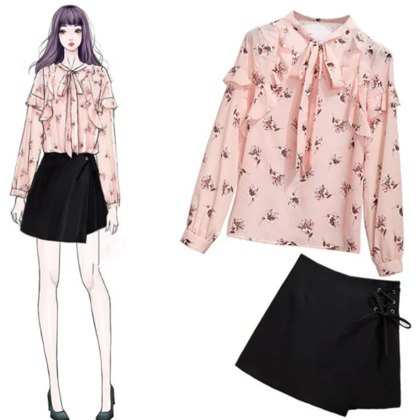 Addition Information of New 2020 Spring Autumn Women Sweet 2 Piece Girls Floral Print Blouse Tops And Mini Skirt Suits Female Fresh Chiffon Sets AQ604