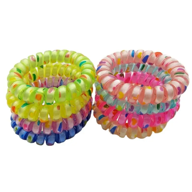 100Pcs/Lot Size 5CM Love Heart Design Hairwear Telephone Wire Band Rope Hair Accessories Gum Random Color